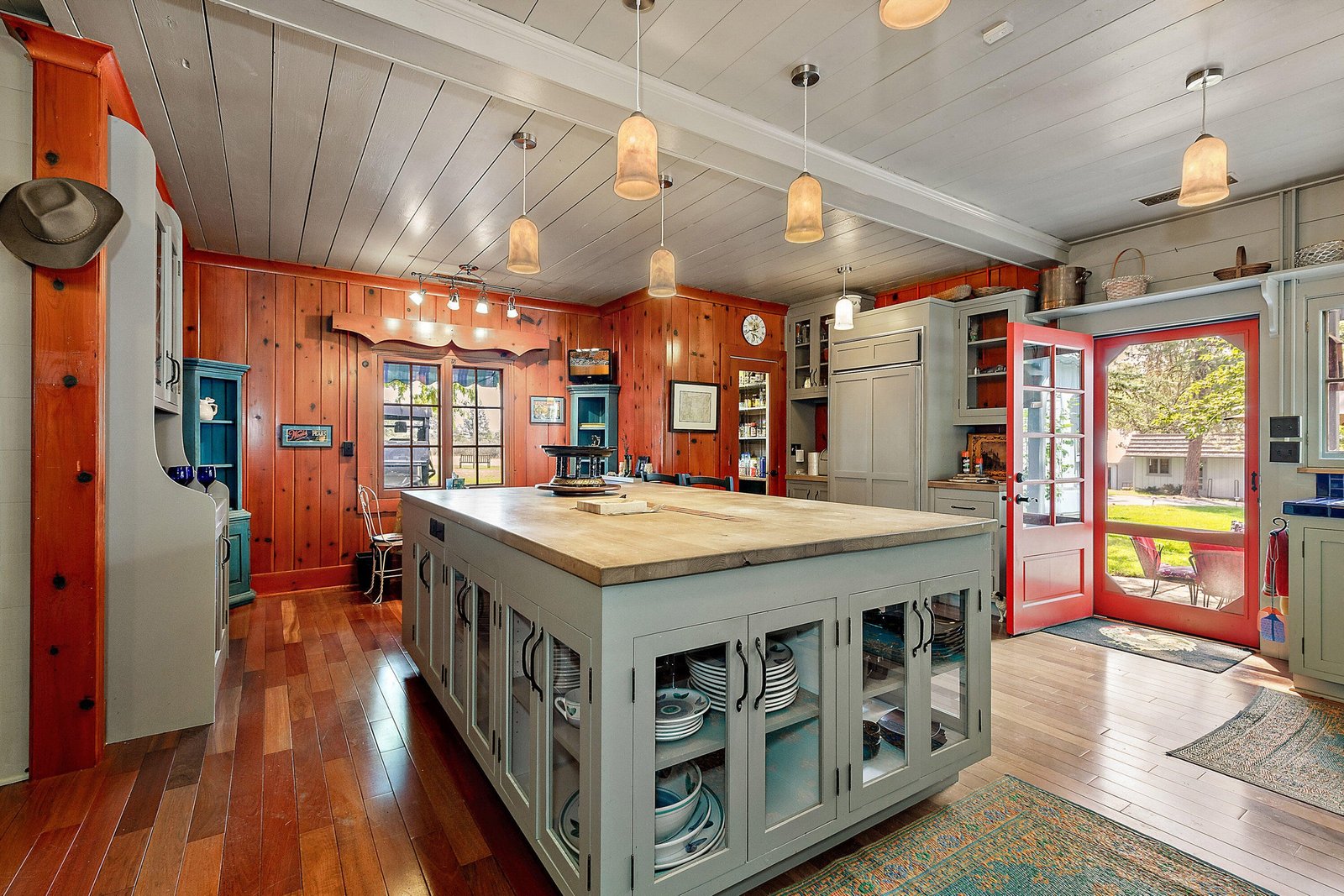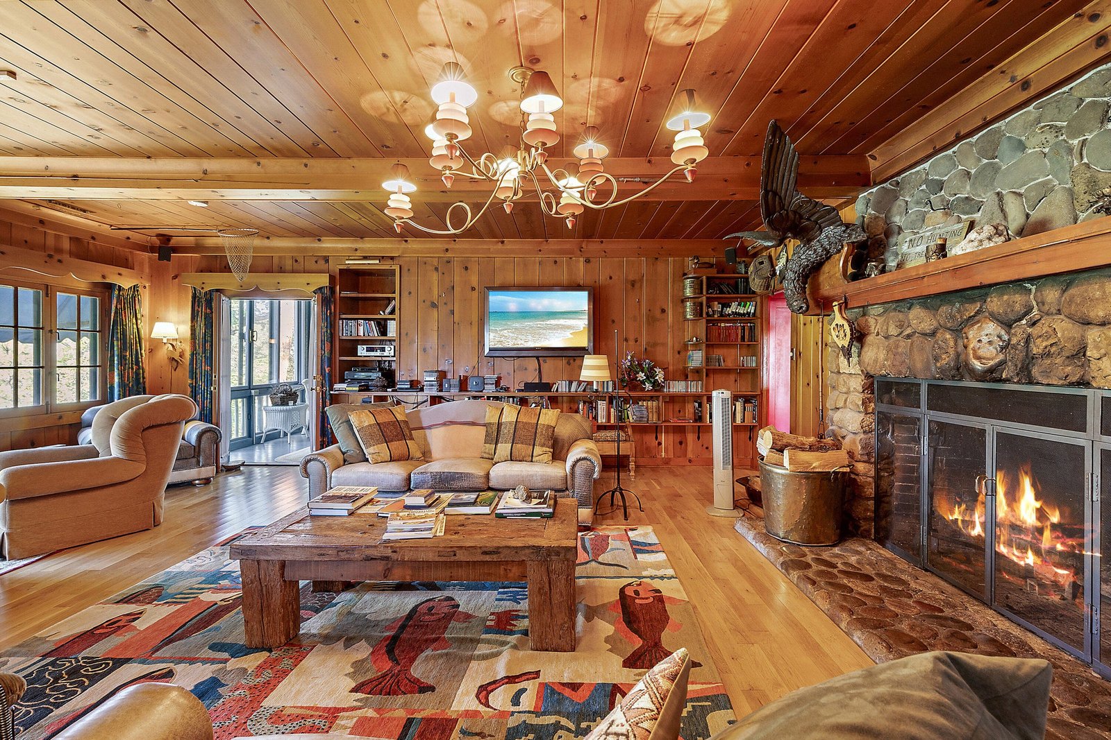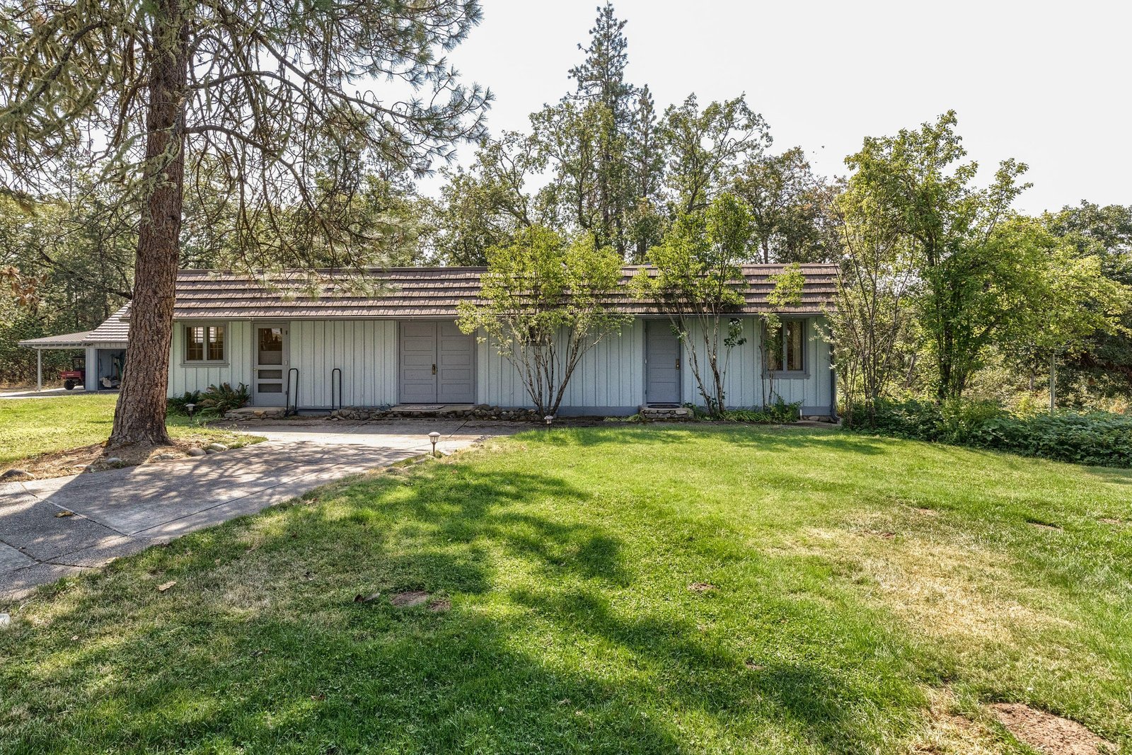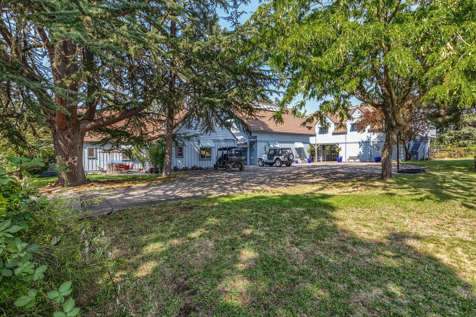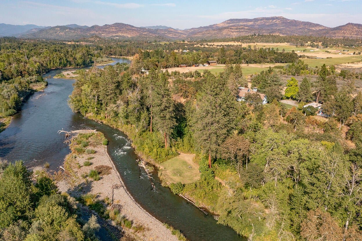 This gorgeous ranch just outside Medford, Oregon, has been owned for the last thirty years by actor Patrick Duffy and is one of the most pristine properties in the area. This property combines privacy, security, and luxury with nine parcels, two homes, and two guest cabins all set on two miles of Rogue River frontage. The primary residence is built in a lodge style on 79 acres of riverfront, that is dividable into five-acre lots and has an art gallery and pool. The buildings feature beautiful wood and river rock blend with the stunning natural surroundings, and large windows. There are over 100 acres of irrigated grounds and a 2 acre pond for irrigation and recreation.