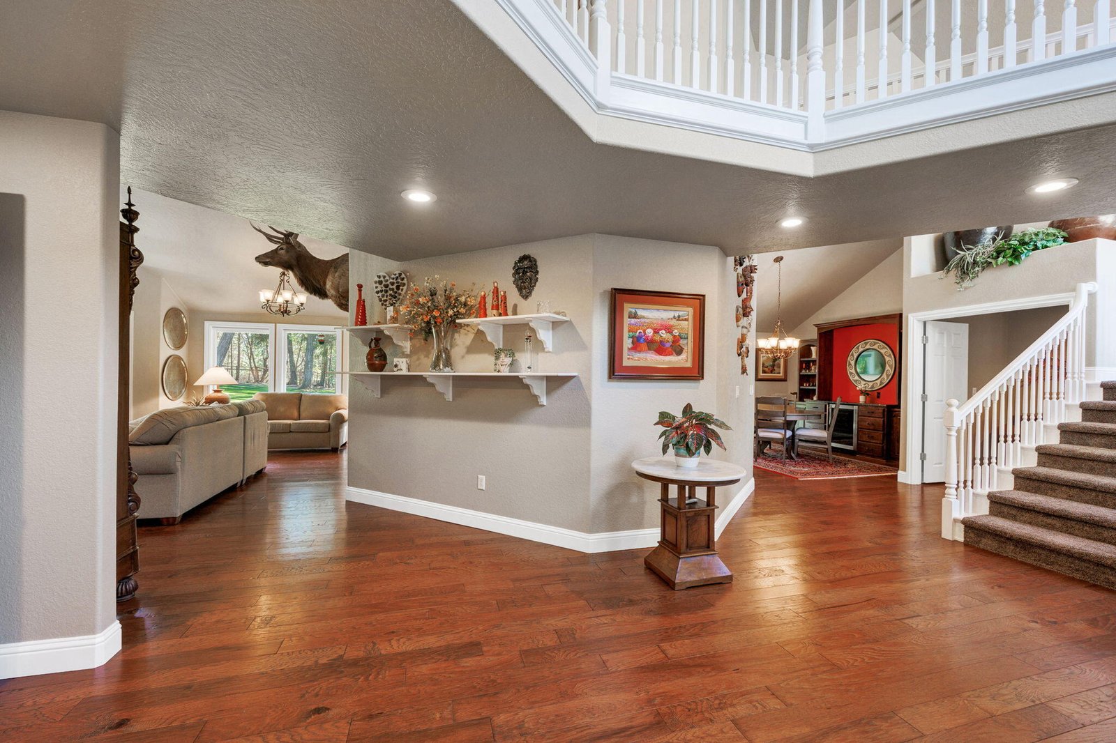 Discover unparalleled luxury in this meticulously maintained 4-bedroom, 3-bathroom residence set on 2.5 acres of picturesque landscape. Boasting 3,500 square feet of living space, this immaculate home features an expansive primary en suite, complemented by breathtaking views. Entertain with ease in the two spacious living areas, while the gourmet kitchen impresses with top-of-the-line appliances and custom finishes. A dedicated office space provides flexibility for remote work or study. Step outside to enjoy the tranquility of the fully fenced grounds, enhanced by low maintenance landscaping. For hobbyists or storage needs, a 1,500 square foot shop with AC/heat and a 1,560 square foot RV barn offer ample space. Conveniently located yet secluded, this property offers the perfect balance of privacy and accessibility. Don’t miss the opportunity to experience refined living in this exceptional estate. There is simply way too much to list, schedule your showing today!